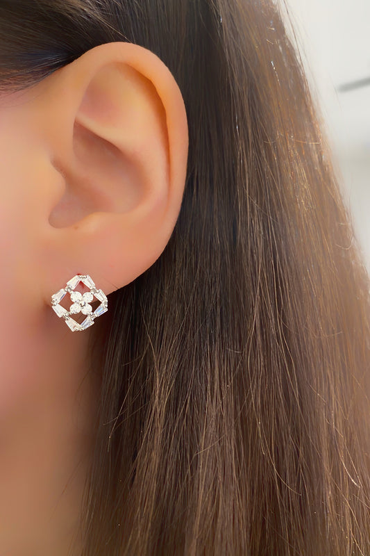 Vip Trapez Ve Dört Tohum Gümüş Çivili Küpe