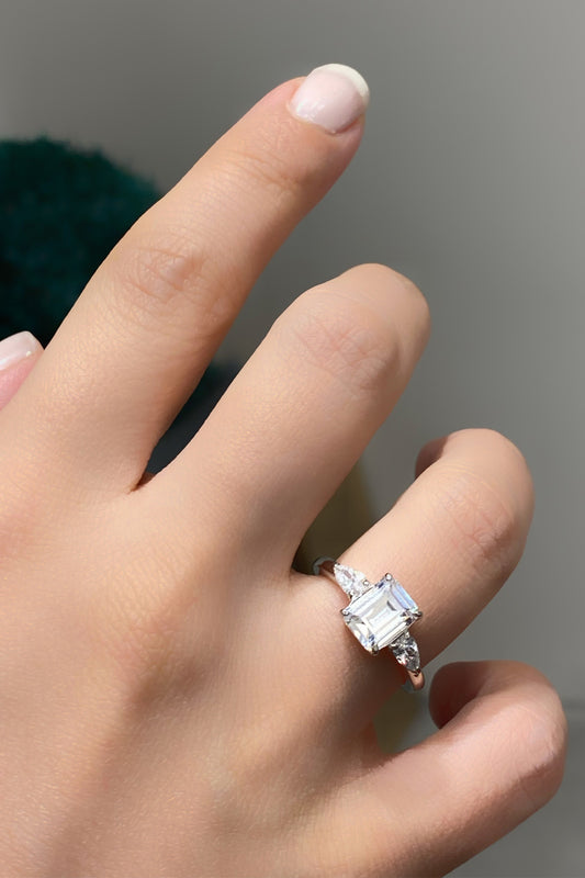 Yanları Beyaz İki Damla Ve Baget Gümüş Yüzük