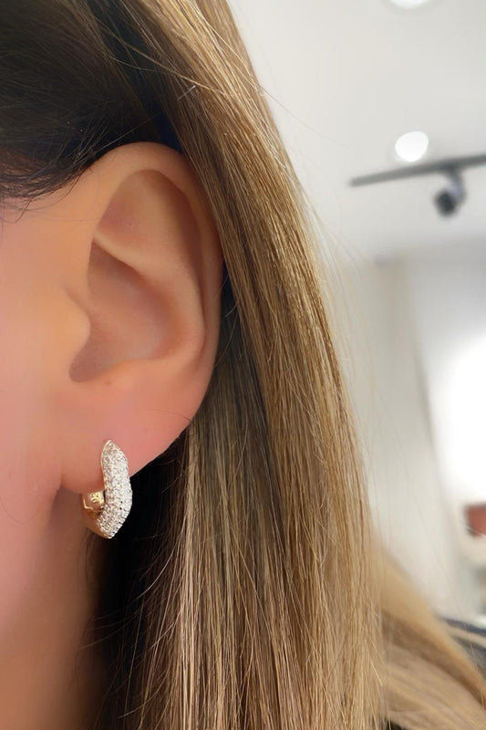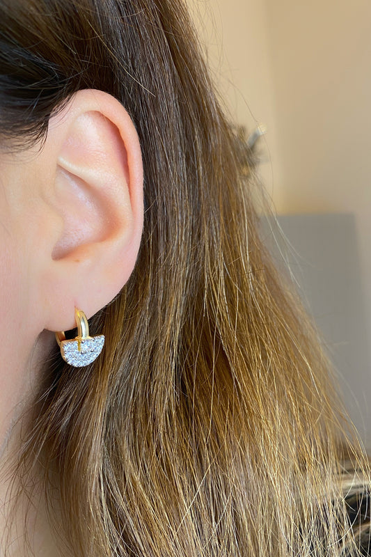 Yarım Yuvarlak Taşlı Gümüş Halka Küpe