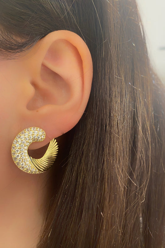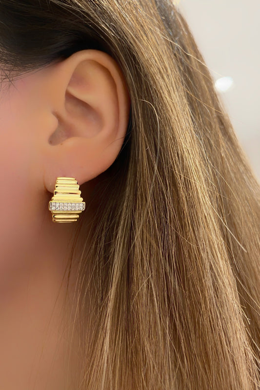 Yarısı Taşlı Geometrik U Gümüş Küpe