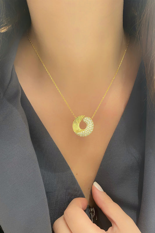 Yarısı Taşlı Salyangoz Gümüş Kolye