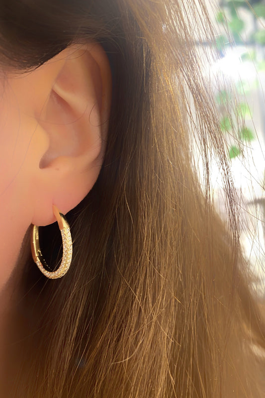 Yarısı Beyaz Taşlı Oval Gümüş Halka Küpe