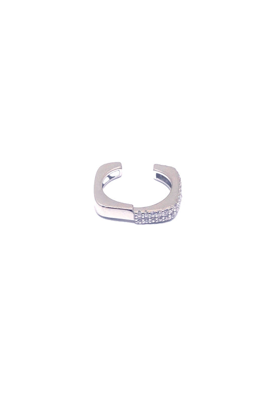 Yarısı Taşlı Kare Gümüş Kıkırdak Küpe