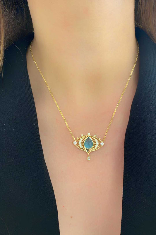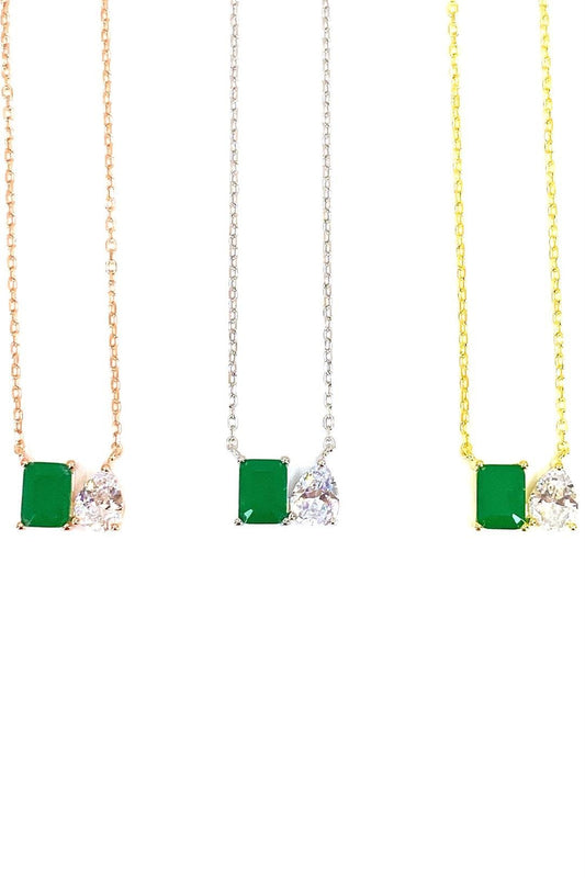 Yeşil Damla Ve İki Karo Göz Gümüş Kolye