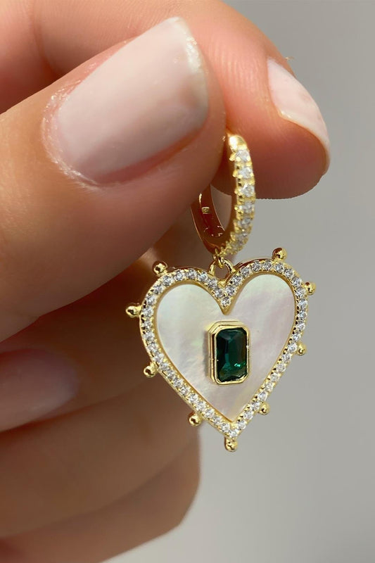 Yeşil Baget Sedef Kalp Sallantılı Gümüş Küpe