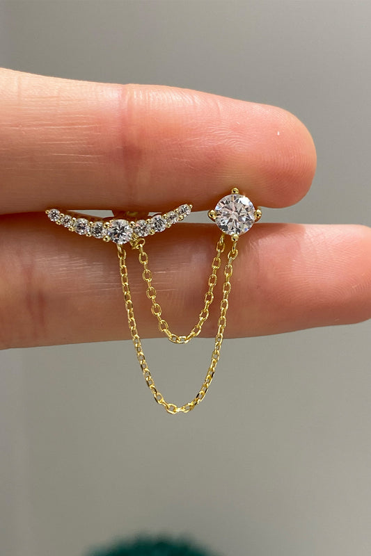 Yay Ve Tektaş İkili Gümüş Çivili Küpe
