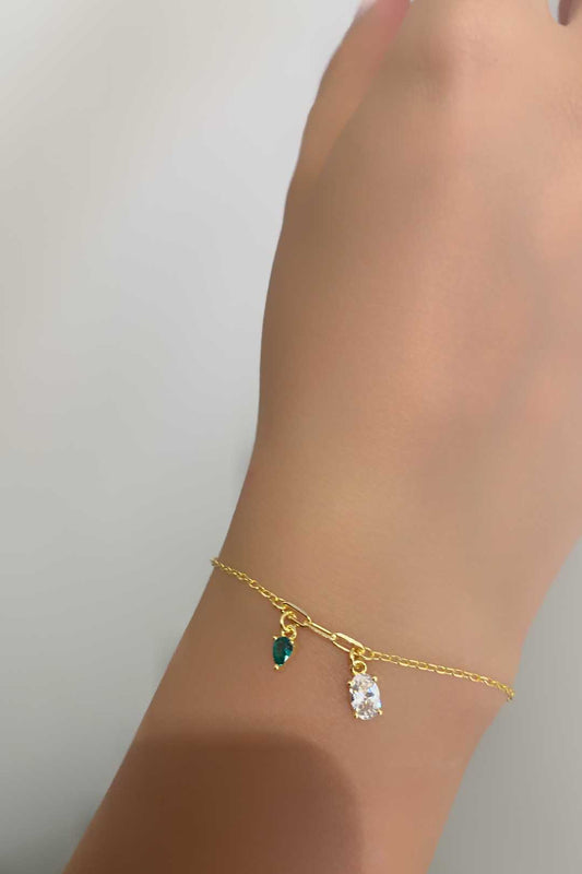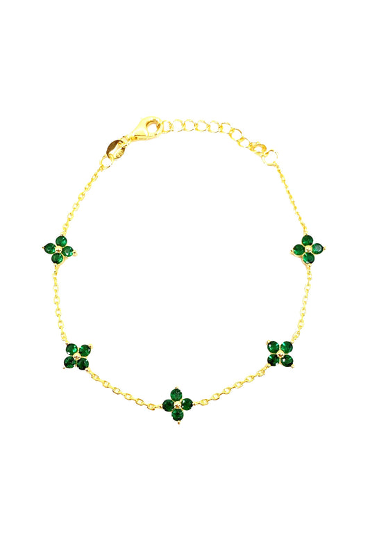 Yeşil Dört Taş Yonca Ve Top Gümüş Bileklik