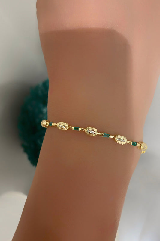 Yeşil Baget Detay Dikdörtgen Bakla Gümüş Bileklik