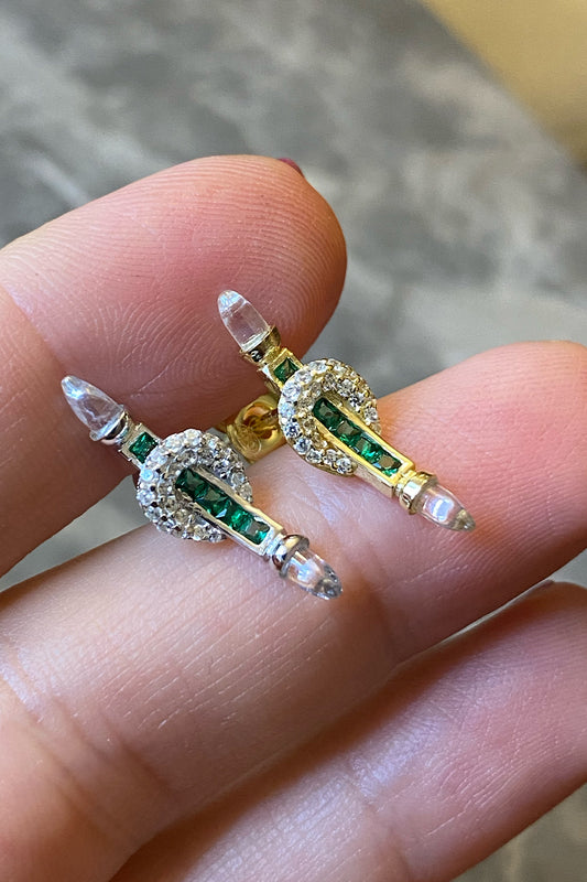 Yeşil Bagetli Fermuar Gümüş Çivili Küpe