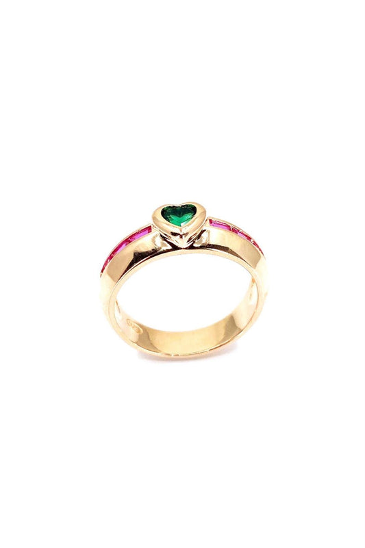 Yeşil Kalp Ve Ruby Baget Gümüş Yüzük