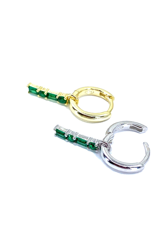 Yeşil İki Taş İki Baget Çubuk Gümüş Küpe