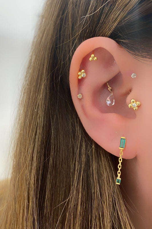 Yeşil İki Baget Sallantılı Gümüş Küpe