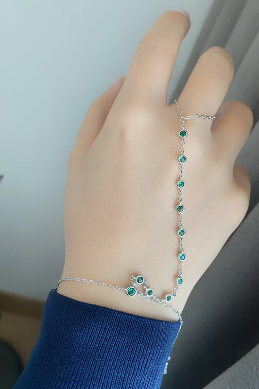 Yeşil Oval Top Detay Göz Gümüş Bileklik