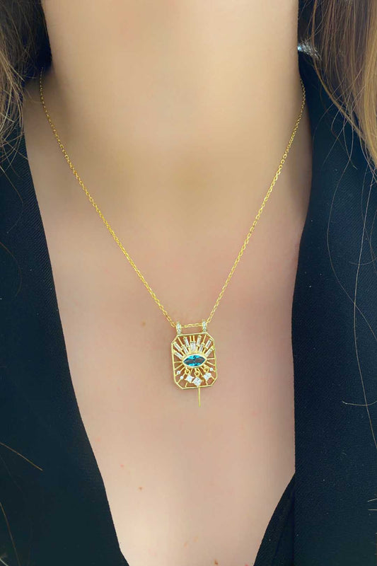 Yeşil Markiz Ve Baget Kirpikli Dikdörtgen Gümüş Kolye