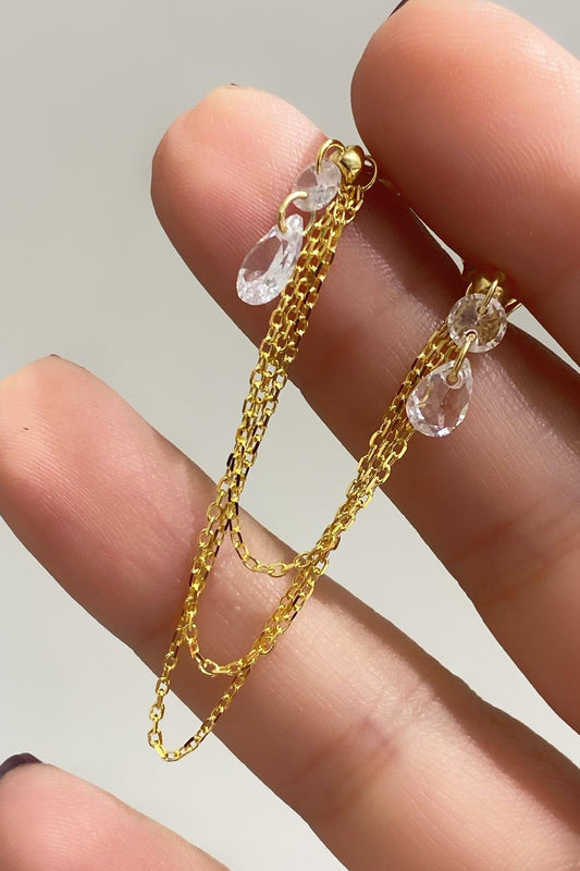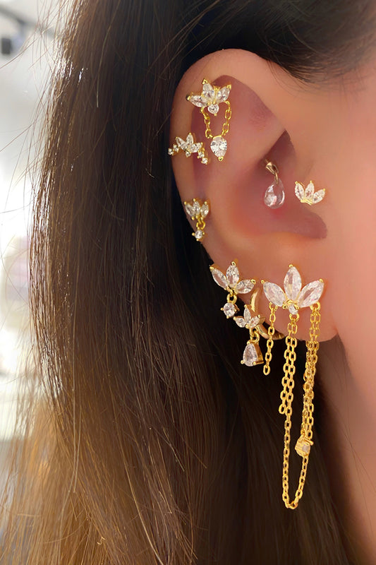 Zincir Detay Lotus Gümüş Zincir Klips Küpe