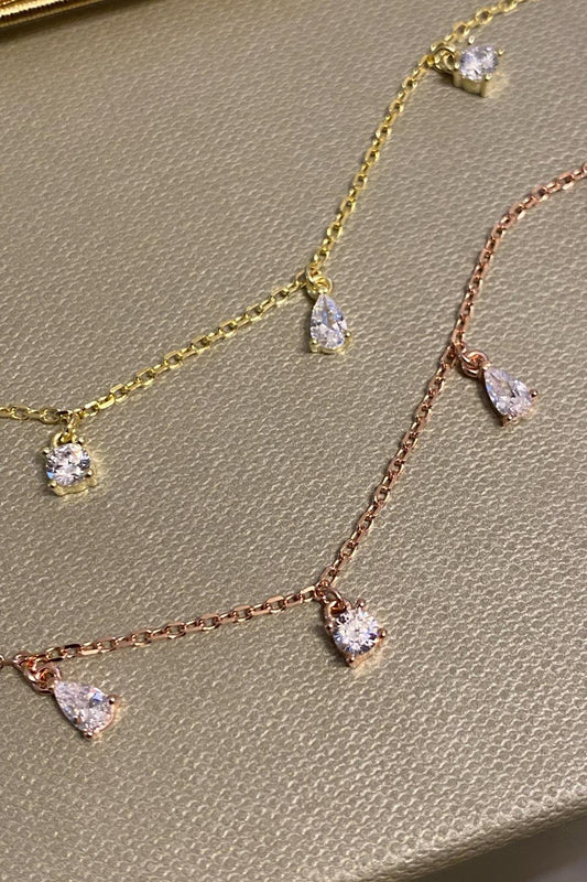 Yuvarlak Ve Damla Beş Taş Sallantılı Gümüş Halhal