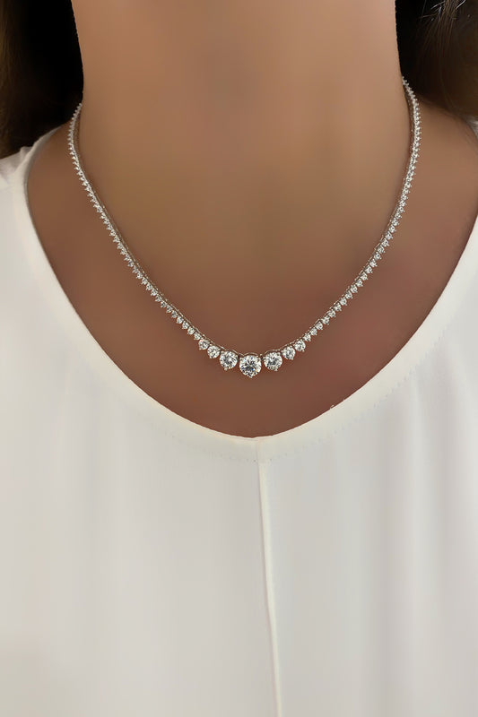 Yuvarlak Taşlı Süzme Gümüş Suyolu Kolye
