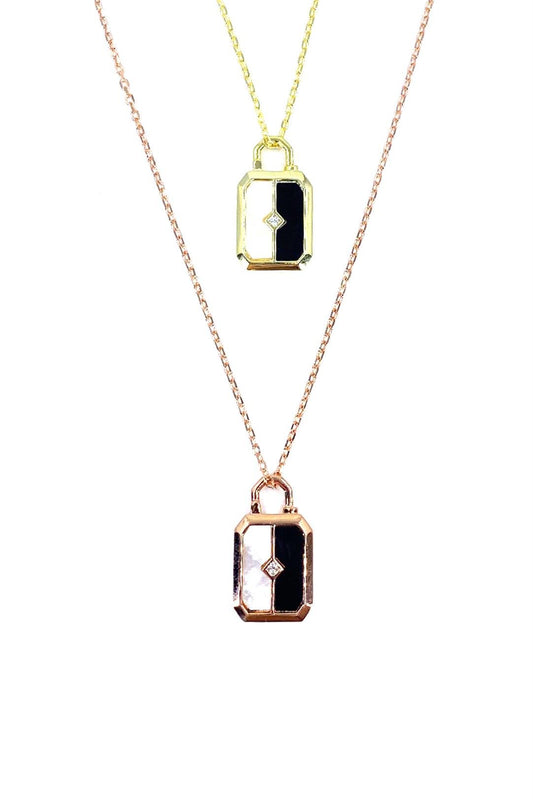 Beyaz Ve Siyah Sedef Kilit Gümüş Kolye