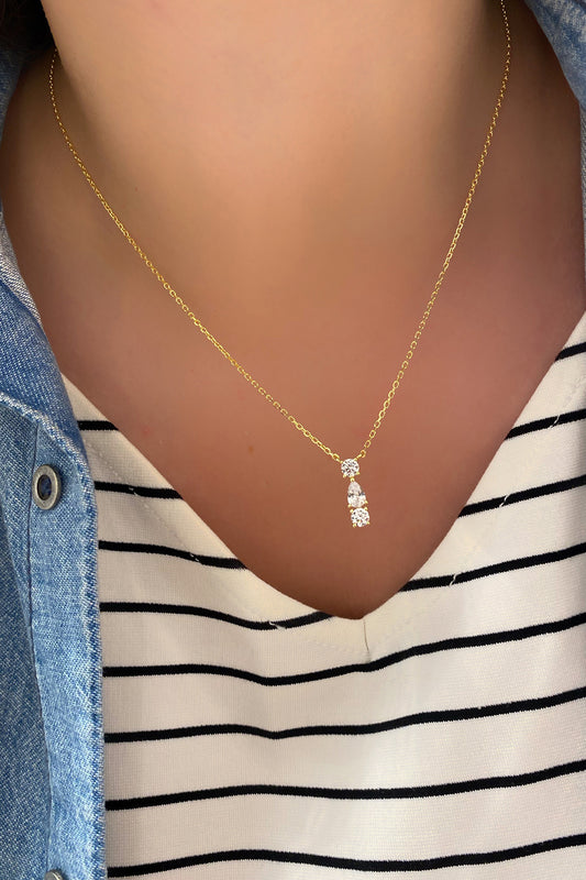 Beyaz Yuvarlak Damla Ve Yuvarlak Gümüş Kolye