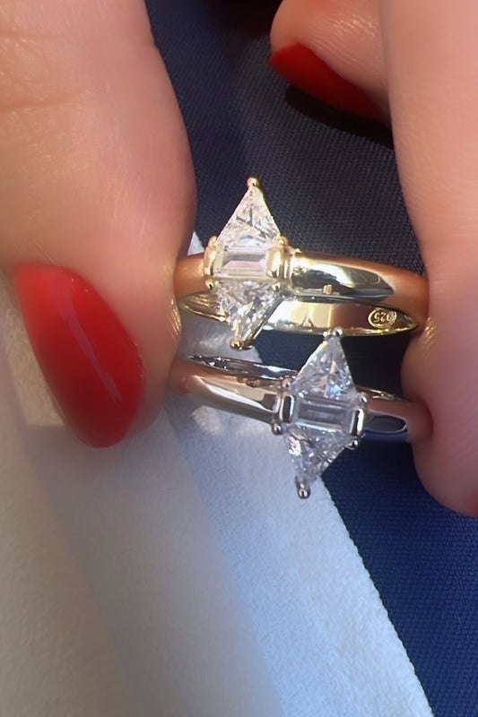 Beyaz Üçgen Baget Üçgen Gümüş Yüzük