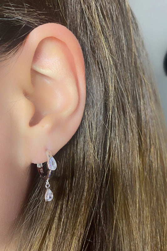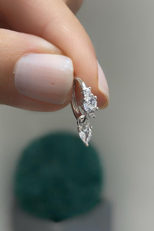 Damla Sallantılı Gömülü Damla Gümüş Küpe