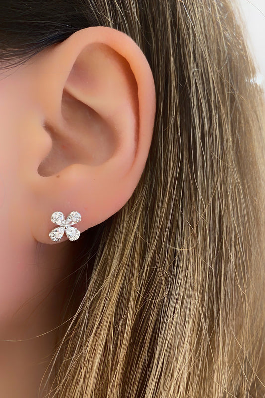 Damla Taşlı Yonca Gümüş Çivili Küpe