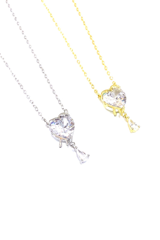 Damla Sallantılı Kalp Taş Gümüş Kolye