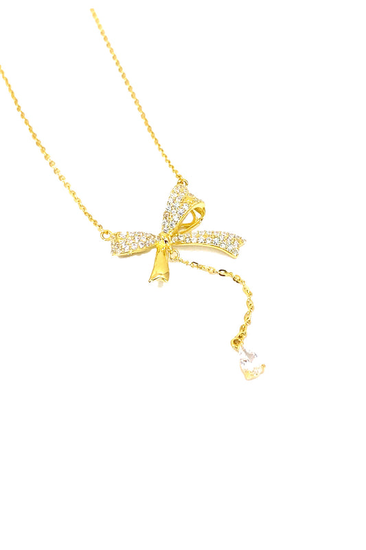 Damla Sallantılı Taşlı Kurdele Gümüş Kolye