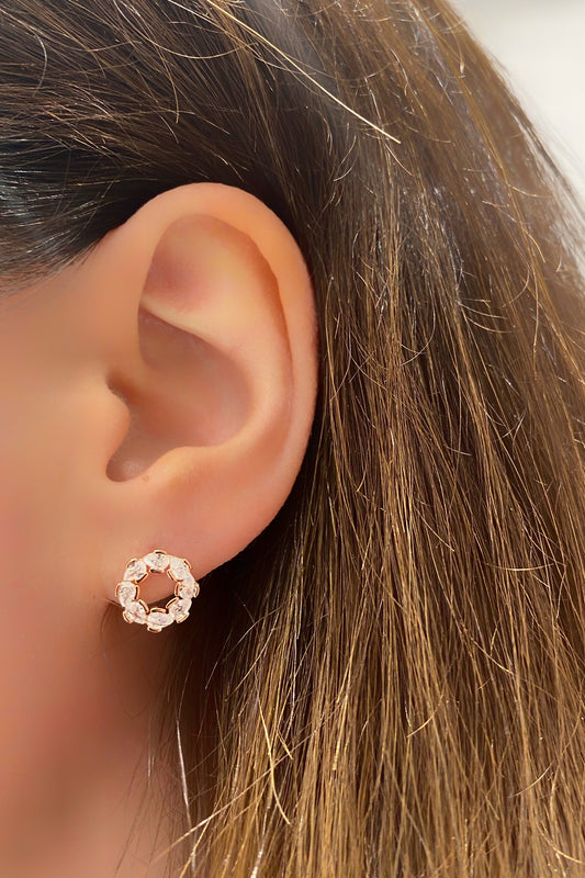 Damla Taş Ve Top Çerçeve Gümüş Çivili Küpe