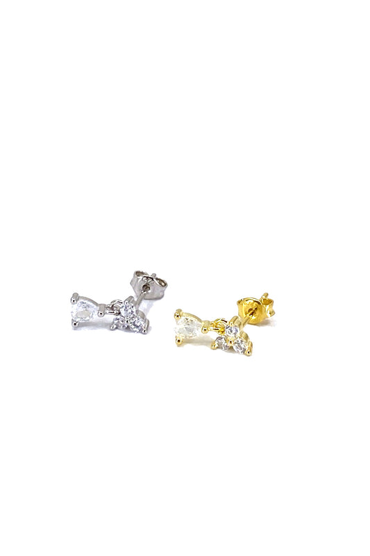 Damla Sallantılı Mini Yay Gümüş Çivili Küpe