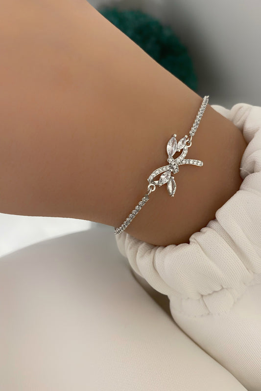 Dört Markiz Detay Fiyonk Mini Suyolu Gümüş Bileklik