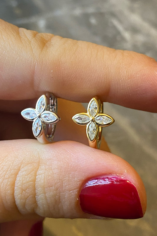 Dört Markiz Çiçek Ve Boğum Gümüş Çivili Küpe