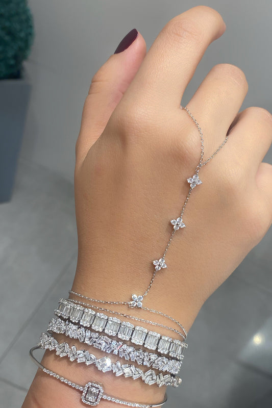 Dört Sıra Baget Tasarım Gümüş Yüzük