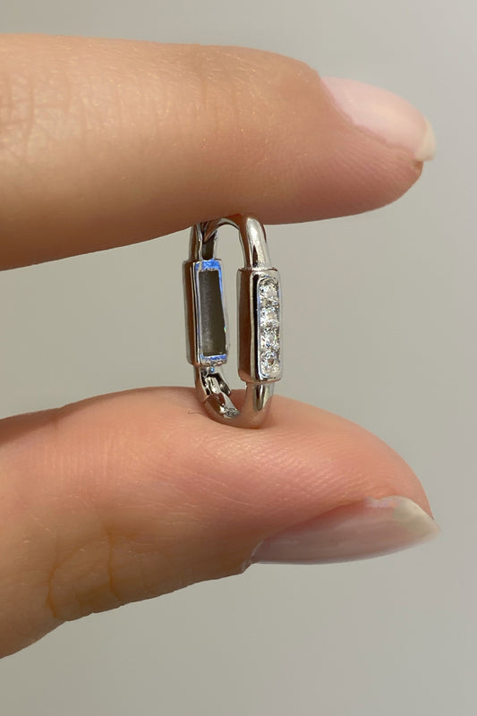 Dört Taş Çizgi Gümüş Açık Halka Küpe