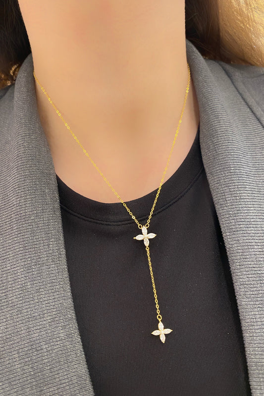 Dört Markiz Üç Çiçek Gümüş Y Kolye