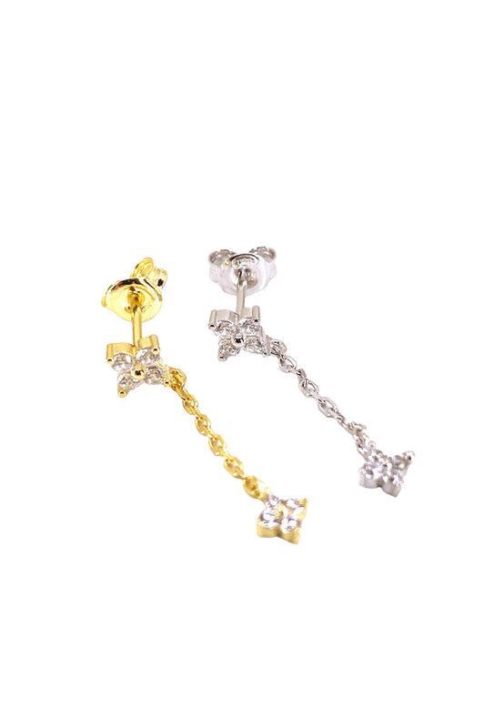 Dört Taş İki Kare Sallantılı Gümüş Çivili Küpe