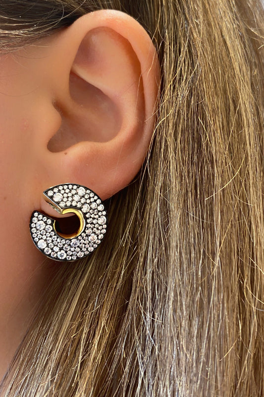 Elmas Montür Yarım Ay Gümüş Çivili Küpe