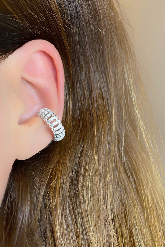 Full Taşlı Aralıklı Gümüş Kıkırdak Küpe