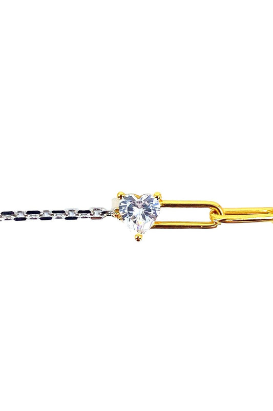 Geo Zincir Ve Tek Kalp Mix Gümüş Bileklik