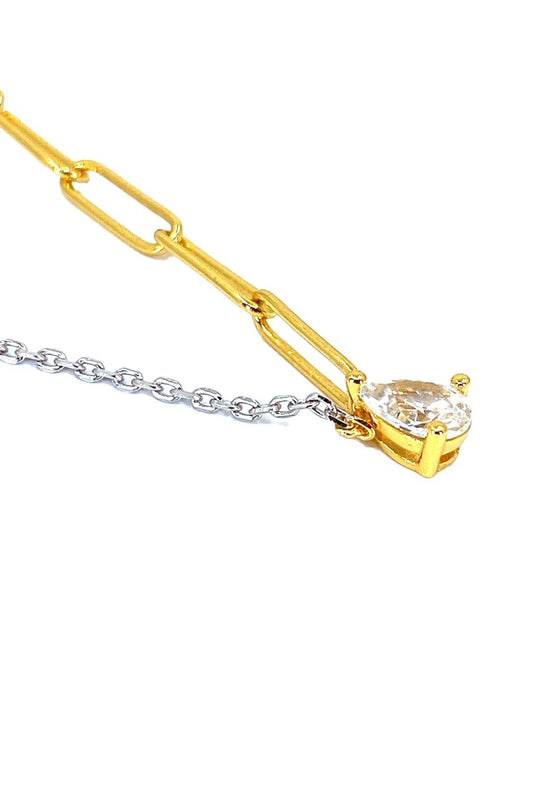 Geo Zincir Ve Tek Damla Mix Gümüş Kolye