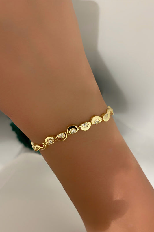 Gold Taşsız Mix Örgü Zincir Gümüş Bileklik
