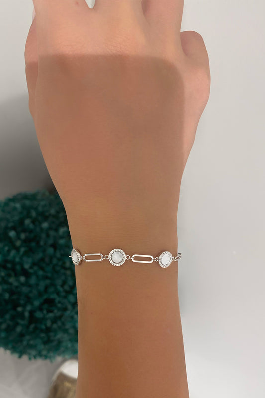 Geo Zincirli Üç Sedef Yuvarlak Gümüş Bileklik