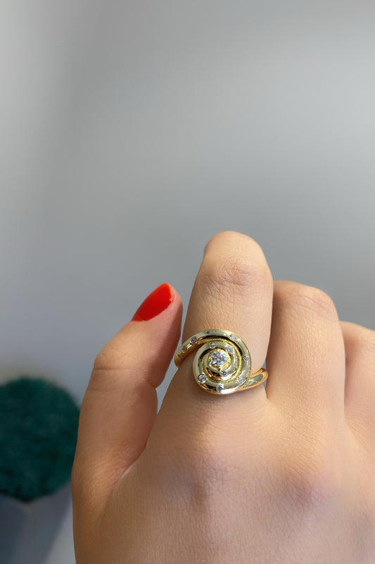 Gömülü Taş Detay Salyangoz Gümüş Yüzük