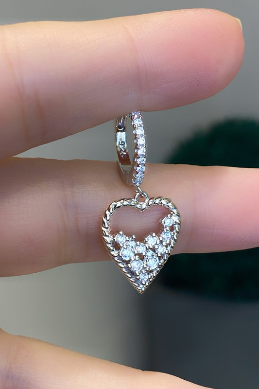 İçi Taş Detay Burgu Kalp Gümüş Küpe