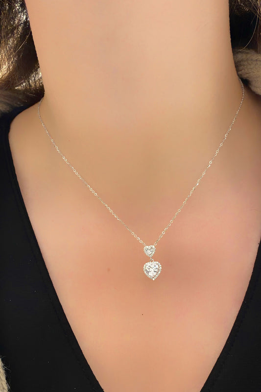 İki Kalp Montür Sallantılı Gümüş Kolye