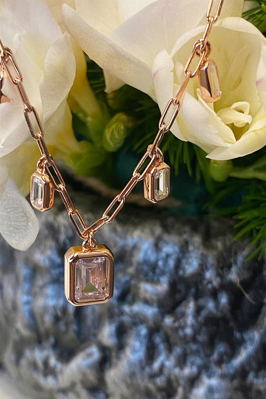 Baget Detay Lacivert Geometrik Gümüş Kolye