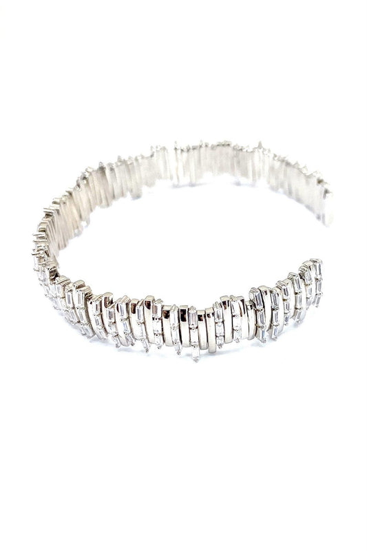 Baget Detay Çember Üç Sıra Taşlı Gümüş Yüzük