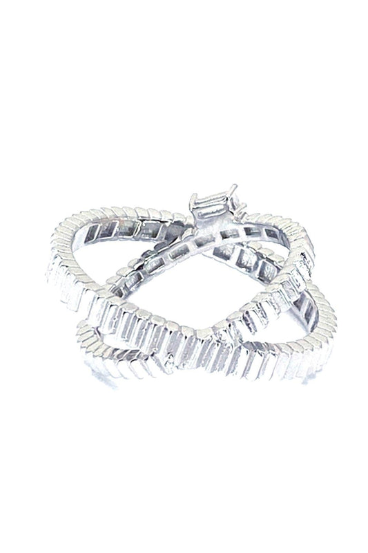 Baget Detay Tırtıklı İki Sıra Çapraz Gümüş Yüzük
