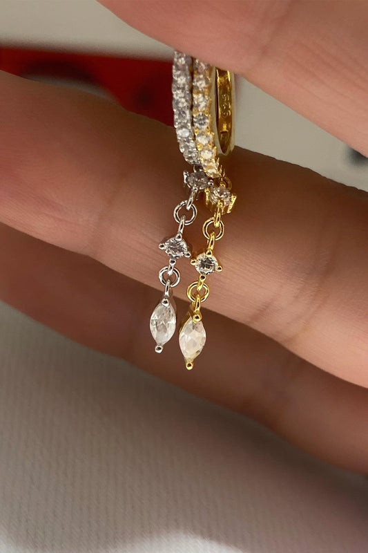 İki Tektaş Ve Markiz Sallantılı Gümüş Küpe
