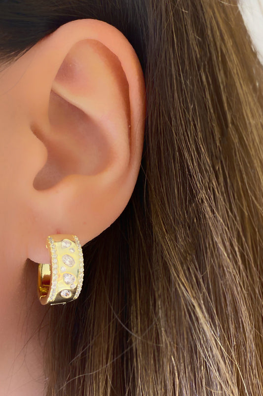 İki Yanı Markiz Taş Detay Kemik Gümüş Açık Halka Küpe